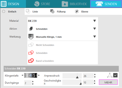 sichtbar ist, wenn die Schneidematte im Plotter in der Ausgangsposition liegt.