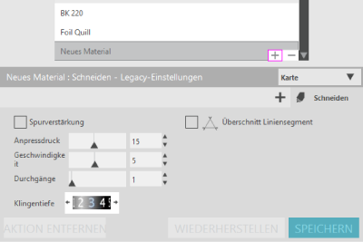 „klackert“ der Werkzeughalter ggf. auf der Transportrolle des Plotters.