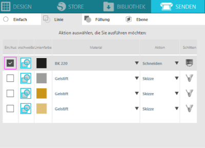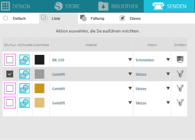 deaktiviere ich die eben abgearbeitete Linienfarbe im SENDEN-Dialog,